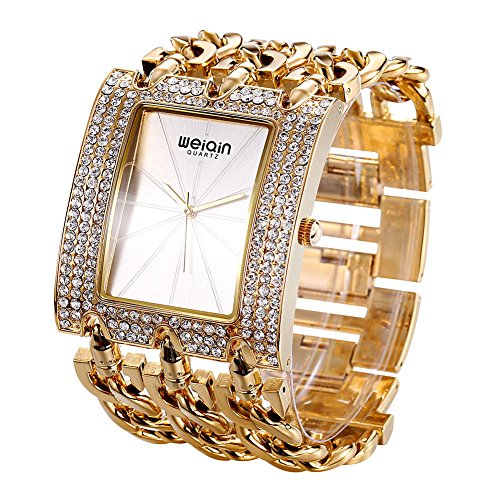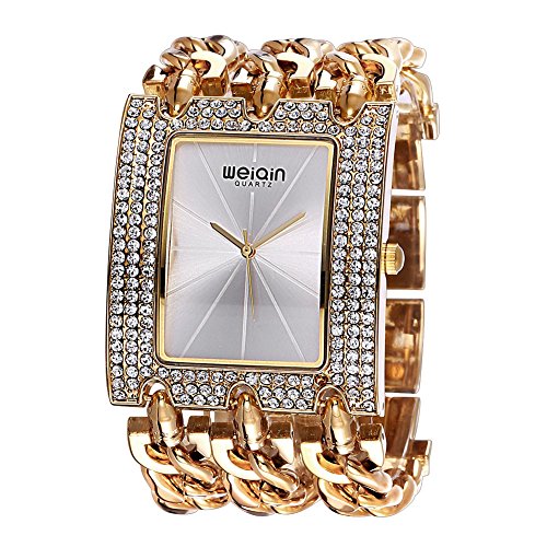 -. Title : WEIQIN Women Ladies Luxury Crystal Gold Bracelet Fashion Casual Dress Wrist Watch (Gold Silver)
