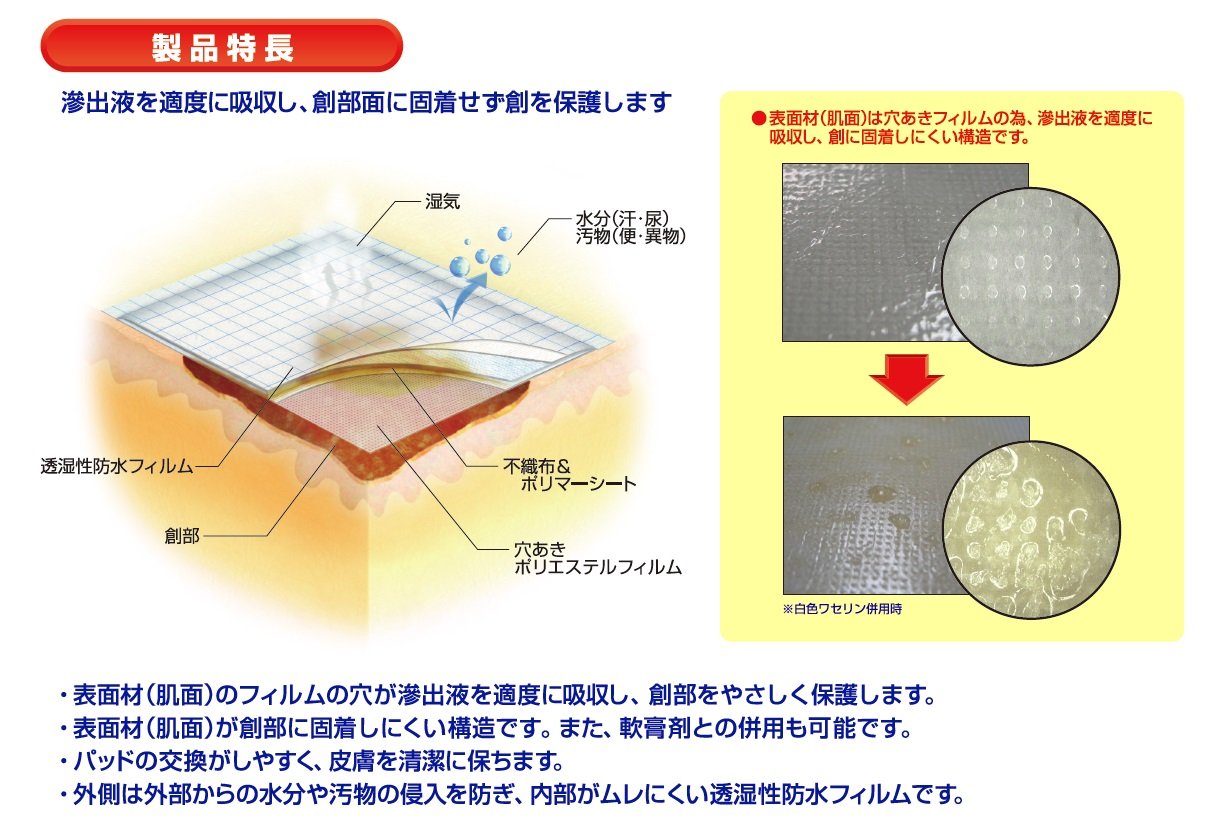 ● Wound covering protective material to use firmly fixed with medical tape etc used in medical institution.