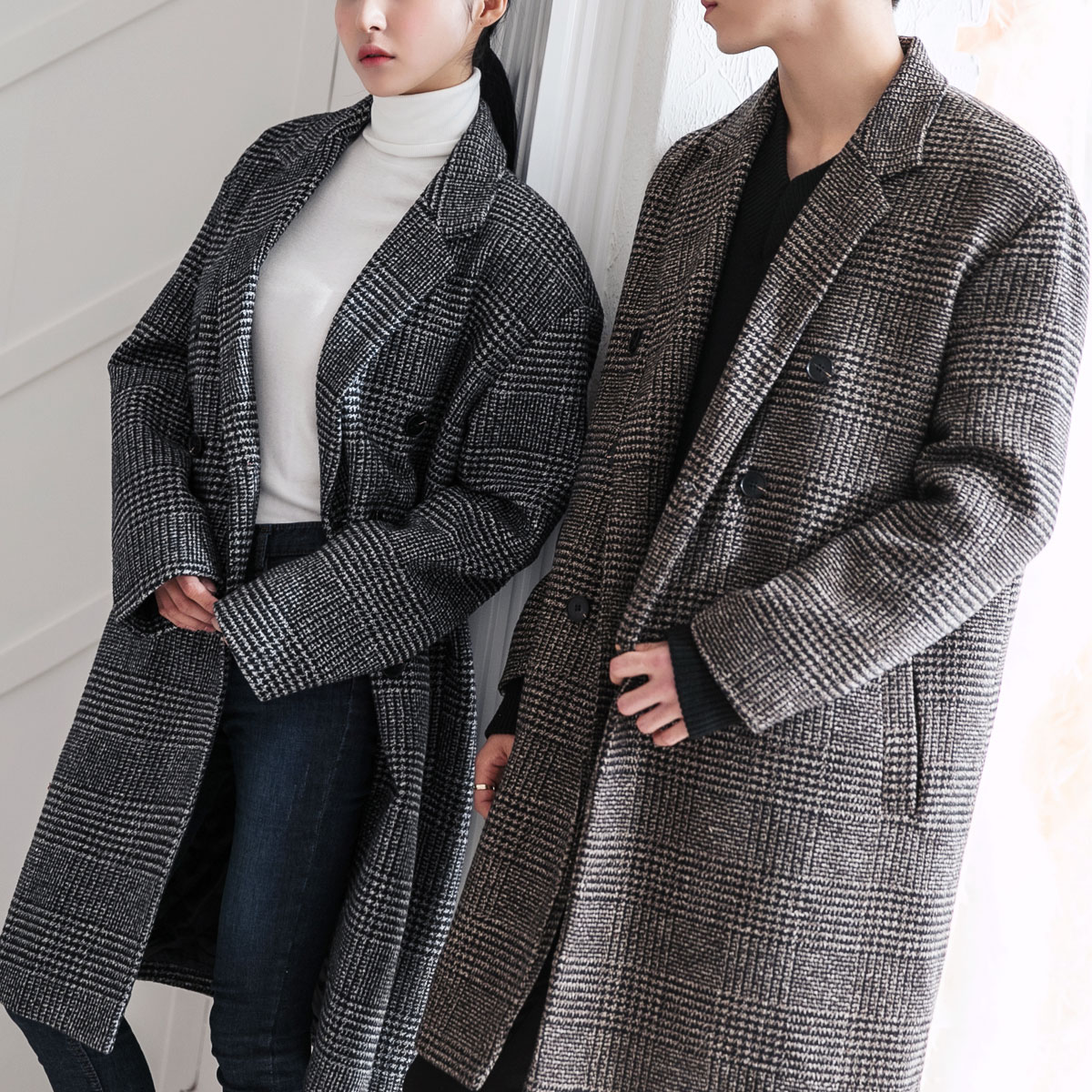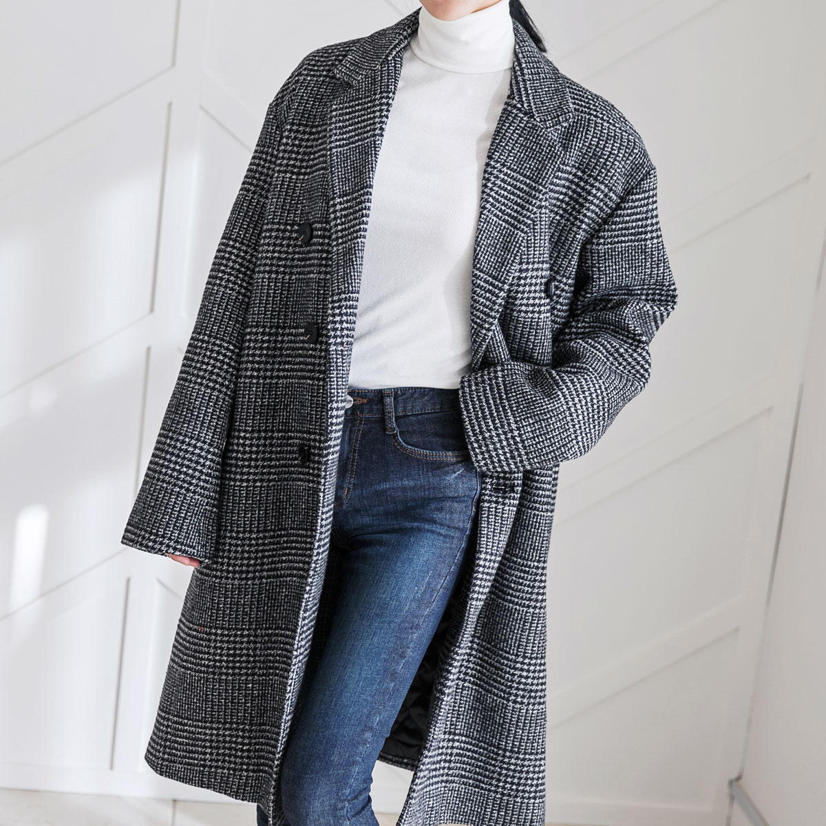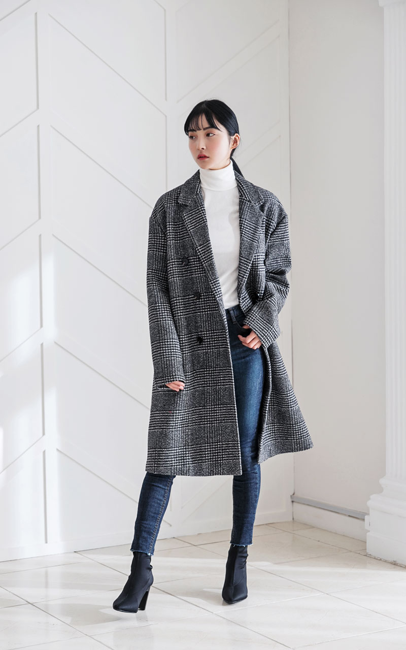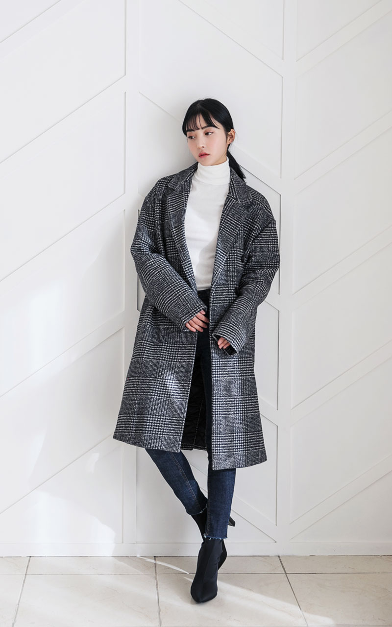 글렌체크 오버핏 코트