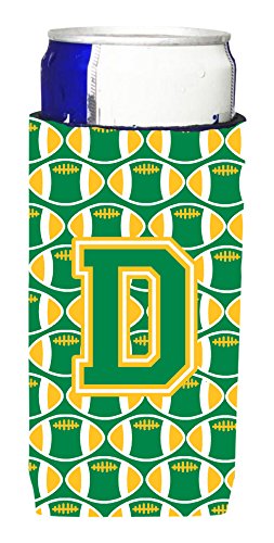Letter D Football Green and Gold Ultra Beverage Insulators for slim cans CJ1069-DMUK