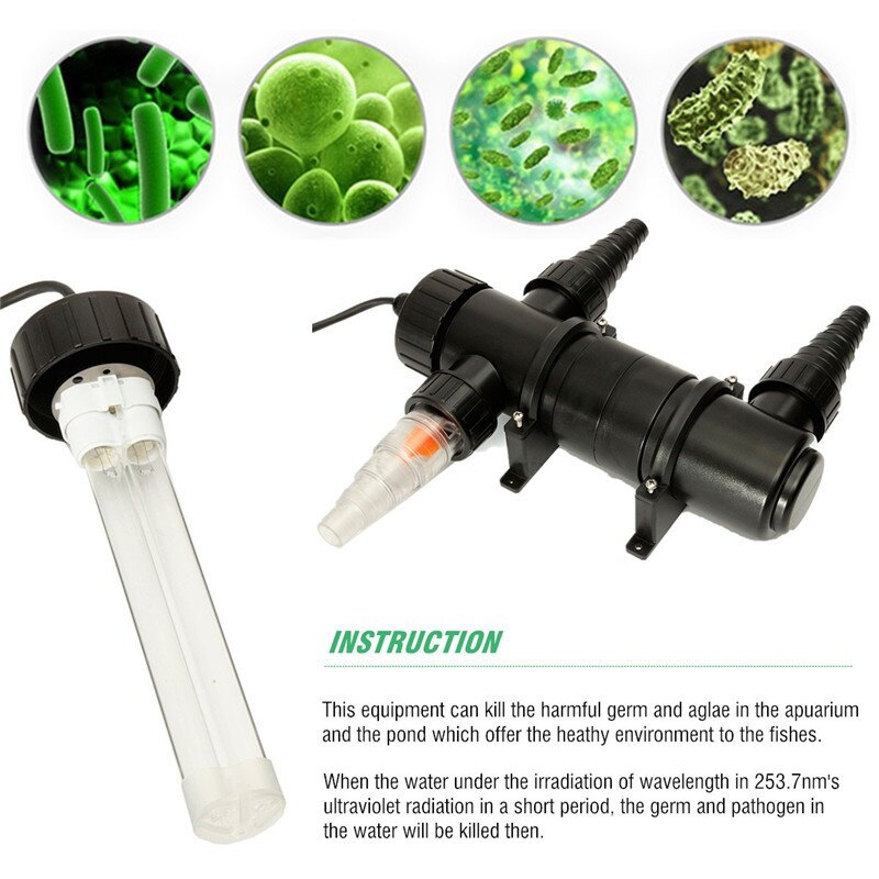 The 18W Aquarium UV Sterilizer is to get rid of green water and build healthier aquatic living place for the fishes, live plants and other aquatics as it efficiently functions on eliminating algae blooms, controlling harmful parasites and bacteria, preventing waterborne pathogens and reducing unpleasant odors. Create natural water ecological environment right now with our brand new UV clarifier.