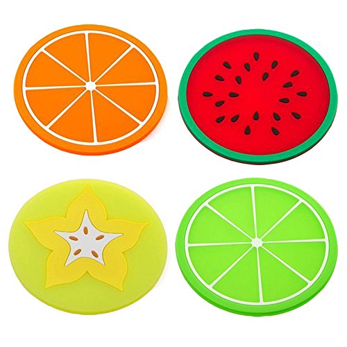 Non-Slip Silicone Fruit Drink Coasters Especially Design for Your Bar,Kitchen and Patio,ChooseU Colorful Fruit Slices Coasters,Set of 4 pcs (red)