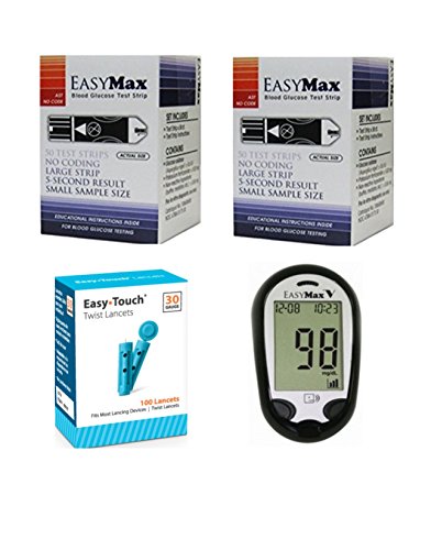 -. Feature : 100 EasyMax Test Strips,100 Easy Touch 30g lancets, EasyMax V Talking Meter / Alternate Site Testing, No Coding, 5 second results, Small sample size