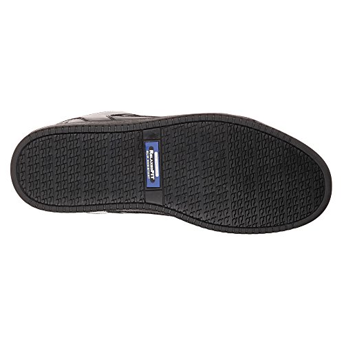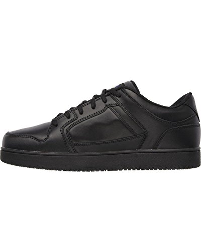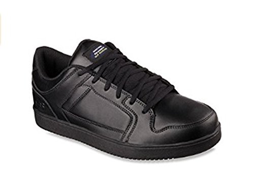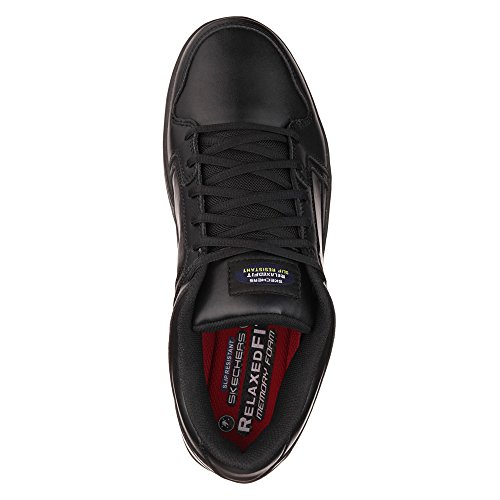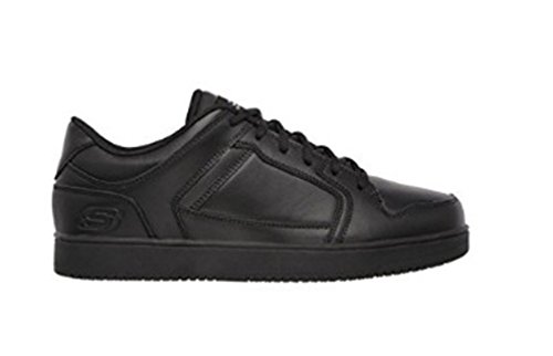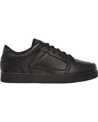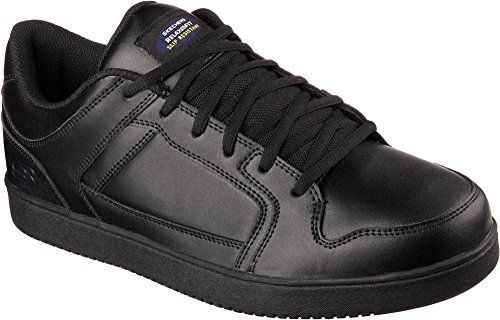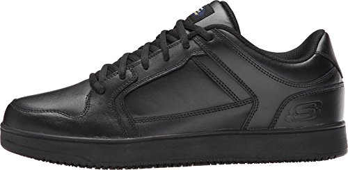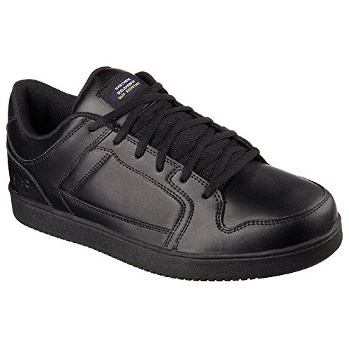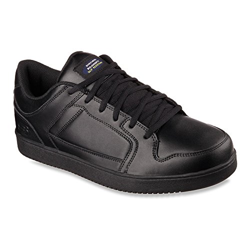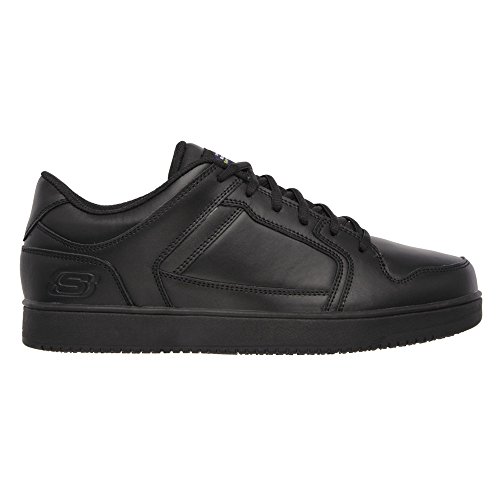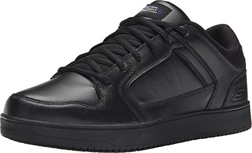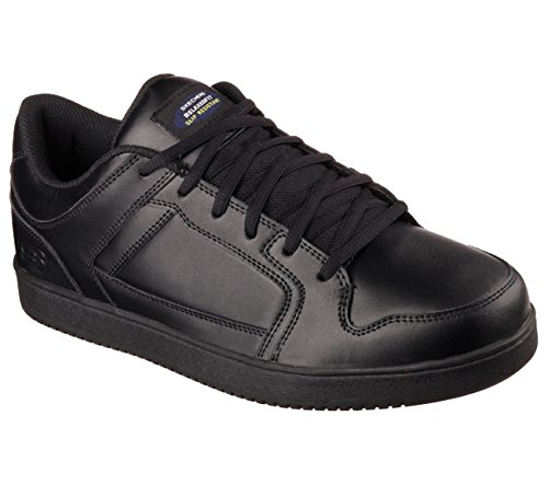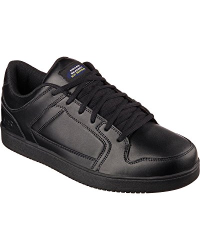 Binding : Apparel Product Description Keep yourself comfortable and safe in cool classic style with the SKECHERS Work Relaxed Fit®: Ossun SR shoe. Smooth leather upper in a lace up sporty casual comfort work slip resistant sneaker with stitching and overlay accents. Memory Foam insole. OSHA compliant slip resistant nitrile rubber outsole. Sole is oil and chemical resistant. Sole tested using ASTM F1677-96 Mark II standards to meet or exceed a .5 coefficient even on wet and oily surfaces. Electrical Hazard (EH) Safe design. EH Safe tested ASTM F12412-2011 for protection. Stitching accents. Reinforced stitched seams. Leather overlays on toe, heel and sides. Classic skate sneaker inspired look. Embossed side S logo. Lace up front. Fabric tongue adds breathability. Padded collar and thick padded tongue. Soft fabric shoe lining. Relaxed Fit® design for a roomy comfortable fit. Memory Foam arch length cushioned comfort insole. Shock absorbing midsole. Slip Resistant nitrile rubber high traction outsoleDetails:OSHA compliant slip resistant nitrile rubber outsole. Sole is oil and chemical resistant. Sole tested using ASTM F1677-96 Mark II standards to meet or exceed a .5 coefficient even on wet and oily surfaces. Electrical Hazard (EH) Safe design. EH Safe tested ASTM F12412-2011 for protection. 0