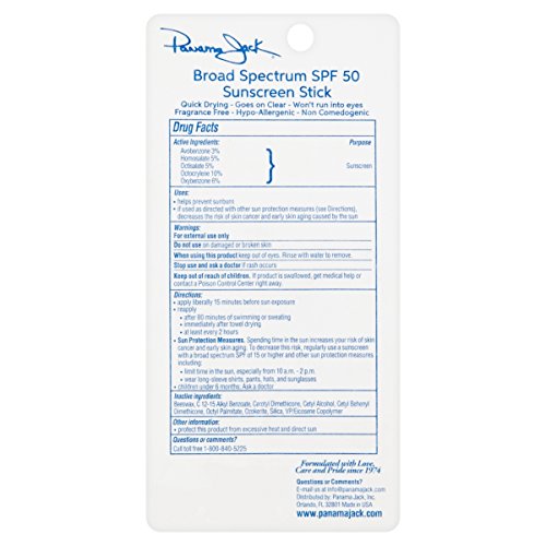 An essential from Panama Jack, our Face Sunscreen Stick is great for your face, lips, ears and nose and comes in a convenient size that fits almost anywhere. SPF 50 goes on clear and offers UVA/UVB Broad Spectrum Protection. Water Resistant and Oil Free. Made with Love, Care and Pride since 1974.Feature