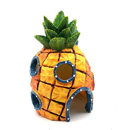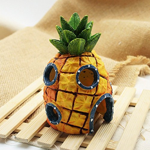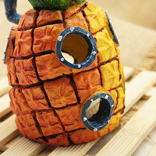 -. Binding : Misc. -. Brand : Five Season -. Color : Yellow -. EAN : 0641361696732 -. Feature : Made from non-toxic, safe resin / Instantly spruce up your aquarium and add a fun decorative look / Bring the undersea world of SpongeBob home and into your child's aquarium / Enjoy the magical world of Bikini Bottom while teaching your child about pets / This Pineapple House has holes for fish to swim through and explore -. Label : Five Season -. Manufacturer : Five Season -. MPN : B-204058 -. PackageQuantity : 1 -. PartNumber : B-204058 -. ProductGroup : Pet Products -. ProductTypeName : PET_SUPPLIES -. Publisher : Five Season -. Size : 7.5*7.5*13cm -. Studio : Five Season -. Title : Five Season Pineapple Landscaping House Fish Tank Aquarium Ornament -. UPC : 641361696732