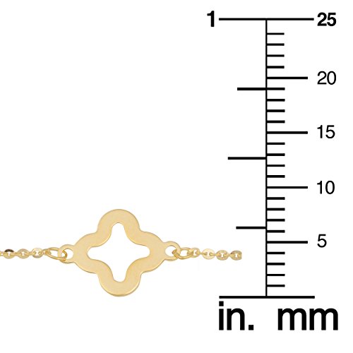 This charming flower bracelet is beautifully crafted in 14k yellow gold and features the majestic glow of high polish finish. A simple, elegant piece that is ideal for all day wear, this 14k gold clover flower bracelet will be an excellent addition to your wardrobe and a great gift idea for your loved one.