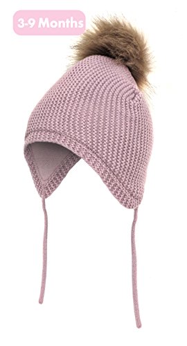 (CalLife)/Accessories/Hats/DIRECT FROM USA/Toddler Ear Flap Winter Beanie Hat, Unisex Kids Garter Stitch Warm Classic Hat With Single Pom.