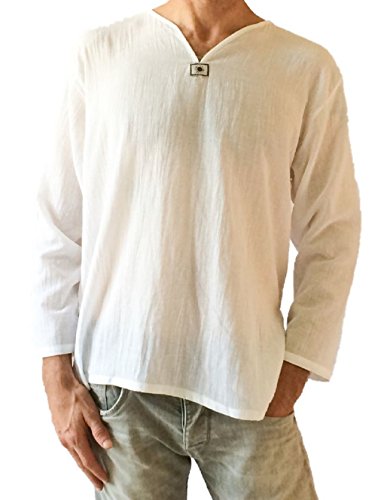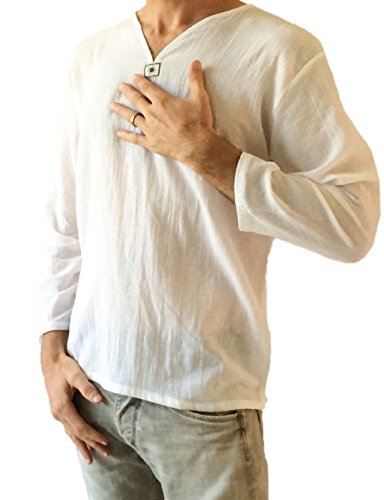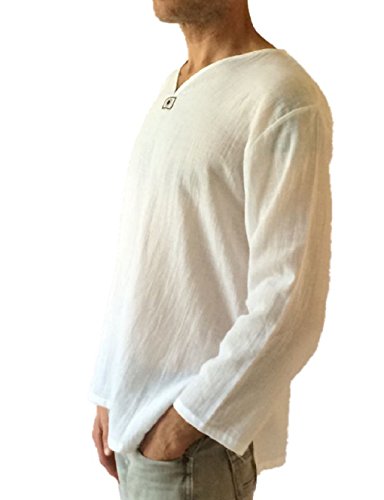 -. Title : Men's White T-shirt 100% Cotton Thai Hippie Shirt V-neck Beach Yoga Top