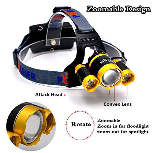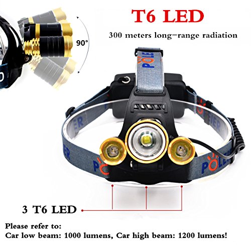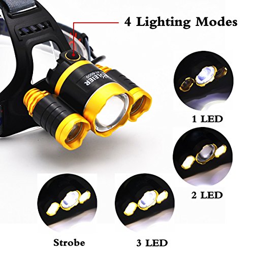 CHOOSE AMONG FOUR MODES FOR THE OPTIMAL BRIGHTNESS SETTING: 1LED/ 2LED/3LED/ flashing.Super Bright and Long Service Time: XM-L T6 LED Bulb,extensive lifetime of LED (100,000 hours).Very Safe:The red indicator light on the battery holder plays a good warning role in night walking or cycling!