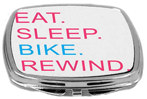Rikki Knight Eat Sleep Bike Rewind Pink & Blue Design Compact Mirror