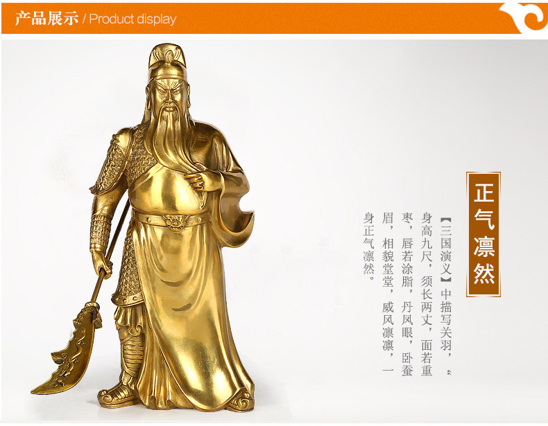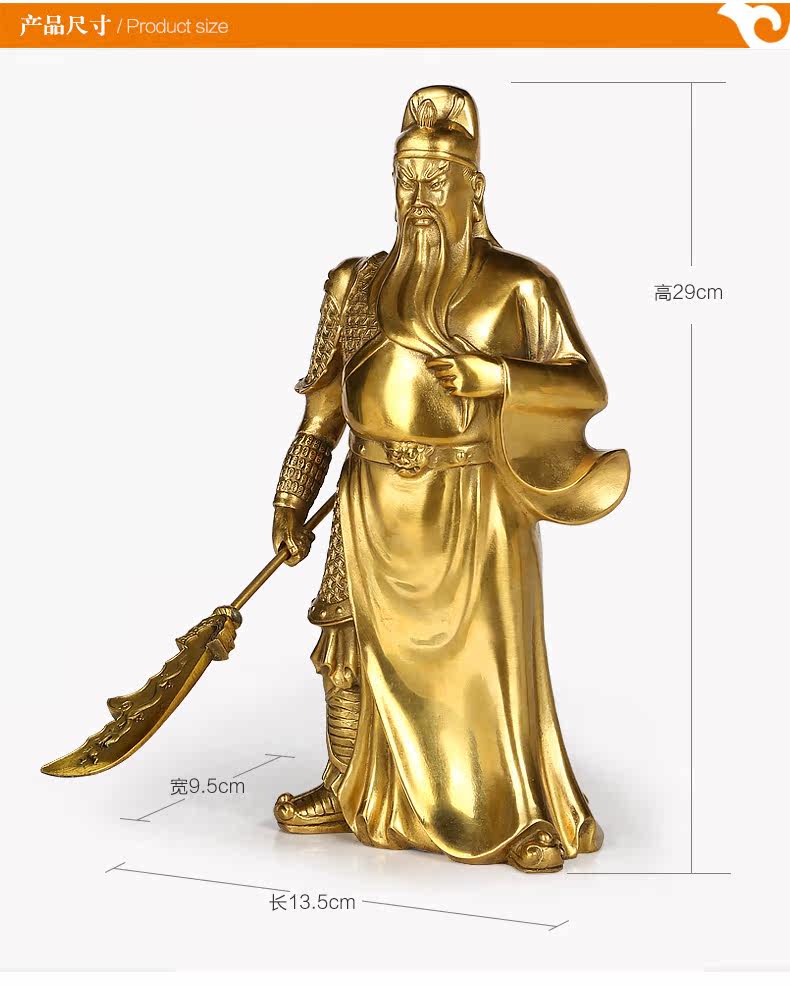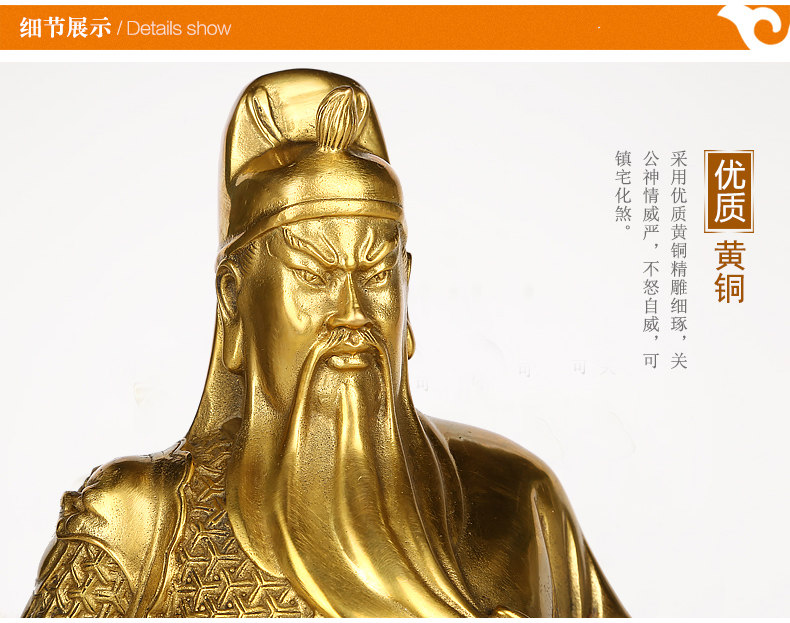上善若水 纯铜关公摆件 武财神佛像关羽关二爷家居招财工艺品0963