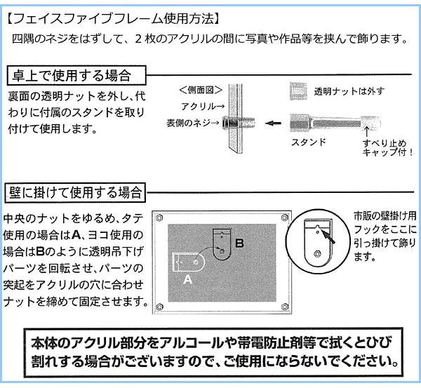 純度99%の高純度アクリルを使用し、高度な技術による美しいカット面が特徴のフォトフレームです。透明度が高いので、時間の経過による黄変がほとんどありません。シンプルなデザインかつ、壁にかけても置いてもご使用いただけるので、場所を選びません。お部屋の色々な場所に大切な絵や賞状、写真、ポスターなどを飾っていただくことができます。 |