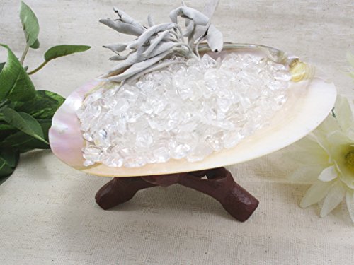 【내용】4점세트:퓨어 쉘(지접조개)×1 화이트《세지》×약8~10g 히말라야(HIMARAYA)산 수정이다 #져(3~10㎜)×약150g,우드 스탠드×1