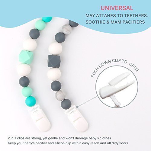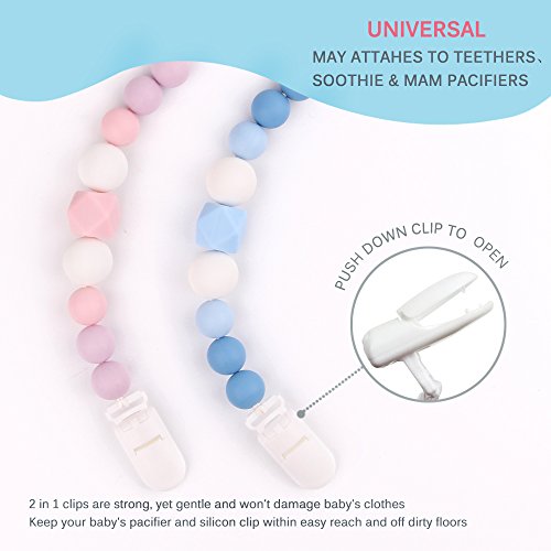-. Title : TYRY.HU Pacifier Clips Silicone Teething Beads BPA Free Binky Holder for Girls, Boys, Baby Shower Gift, Teether Toys, Soothie, Mam, Drool Bibs, Set of 2
