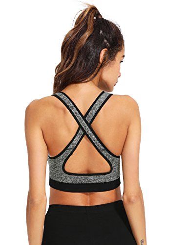 -. Title : SweatyRocks Women's Cross Back High Impact Padded Racerback Sports Bra Yoga Workout Tank Top