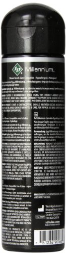 Studio : I-D Publisher : I-D Binding : Health and Beauty Product Description ID Millennium is our best selling silicone-based lubricant and made with the highest quality, pharmaceutical grade silicone. Providing ultra long-lasting, non-sticky lubrication, ID Millennium is super-concentrated to eliminate any chance of drying or dissolving, even under water! Use it in the shower, bath or hot tub for non-stop action. Just a little goes a long way when using Millennium silicone lubricant, so use sparingly and enjoy long-lasting pleasure! Great for a sensuous, moisturizing body massage and for gentle skin conditioning, too! Made in the U.S.A. Available in 1 fl oz, 2.2 fl oz, 4.4 fl oz, 8.5 fl oz dispensing cap bottles, 17 fl oz and 64 fl oz pump bottles. As with any silicone lubricant, we do not recommend using it with any silicone adult toy because, due to a potential chemical reaction, the use of silicone lubricant on silicone adult toys may degrade the surface of the toy. Since silicone is extremely slippery, caution is recommended when using Millennium around surfaces like tile and hardwood floors which will remain slippery until washed with soap and water. To remove possible stains, use an extra strength detergent with a degreasing component. 0