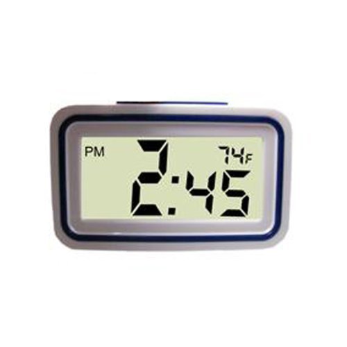 This small, desktop clock shows the time in easy to see digital numbers. The clock displays and speaks the clock time and temperature Fahrenheit. The hour number measures 1 1/2"; and the second numbers measures 1";. One push button on top of the clock to hear the announcement. Note: * Does not have a back-lite *Clock sets to 12 or 24 hour display. (24 hour display is Military Time).4 Works on batteries only. Features: * Language: English * Voice: Female * Color: White with Black ring * Clock Measures 5" x 3"x 1 1/4" * Requires: 2-AA batteries not included