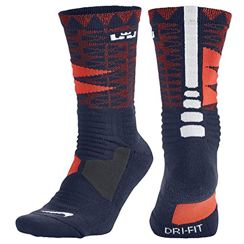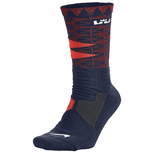 NIKE MEN'S HYPER ELITE LEBRON BASKETBALL SOCKS LARGE (SIZE 8-12) NAVY, RED 5067410