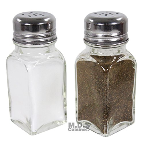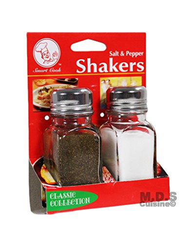 Salt & Pepper Shaker Set of 2 Stainless Steel and Clear Glass Classic Shakers