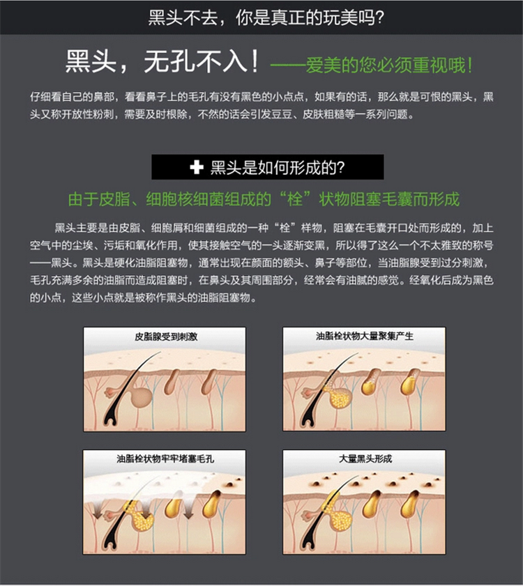 功效:祛黑头、白头、粉刺,收缩毛孔