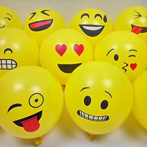 -. Feature : 100pcs latex yellow emoji balloons, great birthday party favor ideas and birthday party decoration / 12 different emoji universe designs, randomly send each design / Standard 12" latex balloons, great holiday party favors / You and your kids will love them, put them on your party, enough joy / Good quality, any question, please contact us