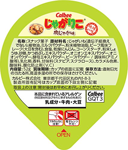 原材料:じゃがいも(遺伝子組換えでない)、植物油、ミルクパウダー、粉末植物油脂、ビーフ風味フレーク(大豆を含む)、食塩、乾燥にんじん、コーンスターチ、粉末しょうゆ、砂糖、かつおぶしエキスパウダー、オニオンエキスパウダー、オニオンパウダー、酵母エキスパウダー、ビーフパウダー/調味料(アミノ酸等)、乳化剤、香料、甘味料(ステビア、スクラロース)、カラメル色素、酸味料、酸化防止剤(V.C)