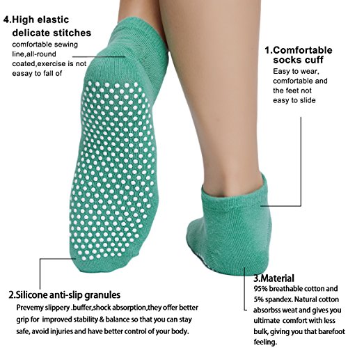 -. Title : Yoga Socks Non Slip Skid Pilates Barre Ballet 4 Pack Socks with Grips Cotton For Women