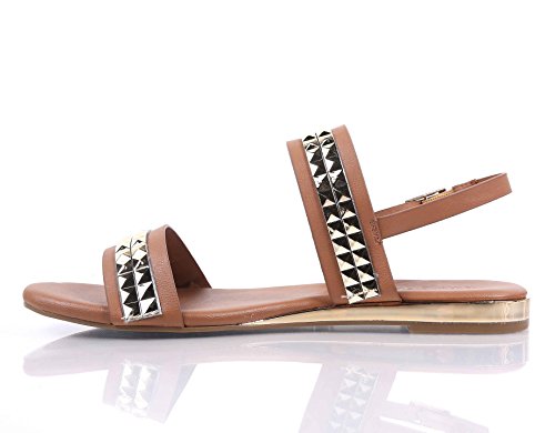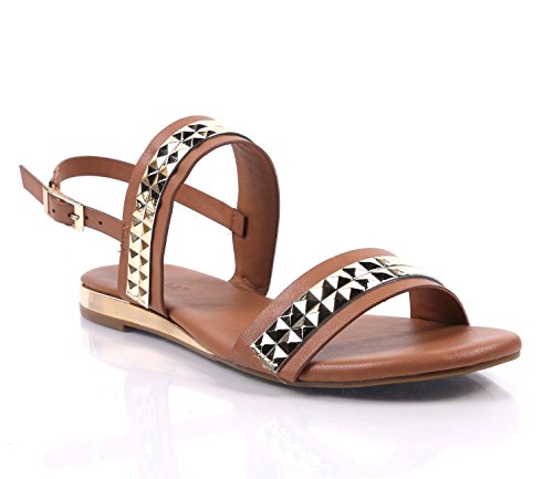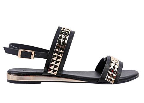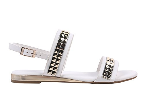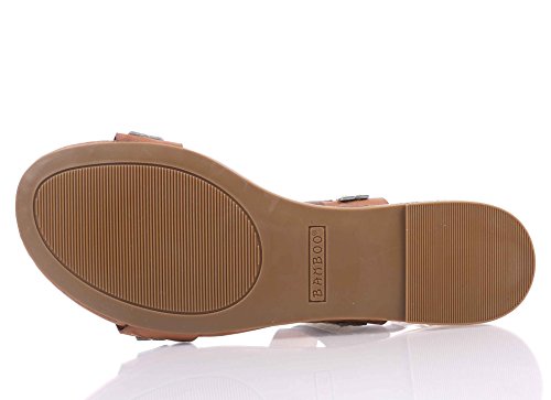 Binding : Apparel Product Description Stylish fashion Bamboo open toe sandals made of synthetic material with manmade PU surface, covered by decor electroplate plastic studs in light gold color. Complete cushioned footbed for long wearing comfort. Adjustable buckle closure for convenient fitting. Available in 3 color of Black, White and Tan. Manufactured in China 0