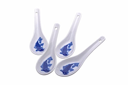 M.V. Trading WT007 Chinese Porcelain Soup Spoons with Fish Design, 5¼-Inch Long, 3/4-Ounce, Set of 4