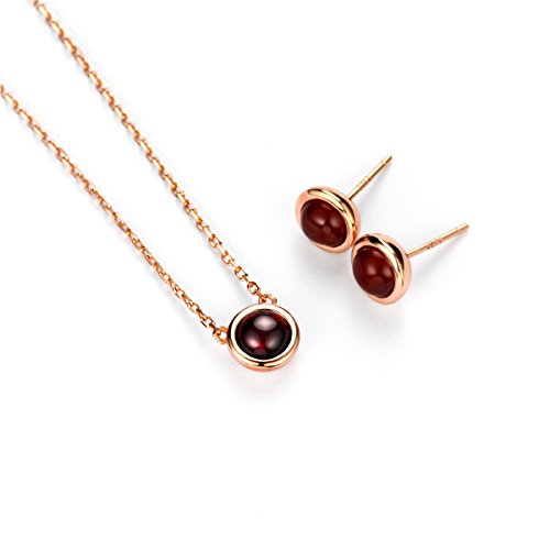 The necklace made of natural red garnet set in sterling silver with rose gold plated, garnet approximate 1.2 ct.t.w, Chain Length: 16 inch