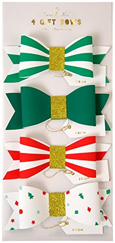 These bows will add a beautiful decorative finish to your Christmas gifts. They come in a range of patterns in bright colors. The bows are embellished with gold glitter and metallic twine and each comes with a tag.