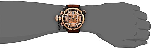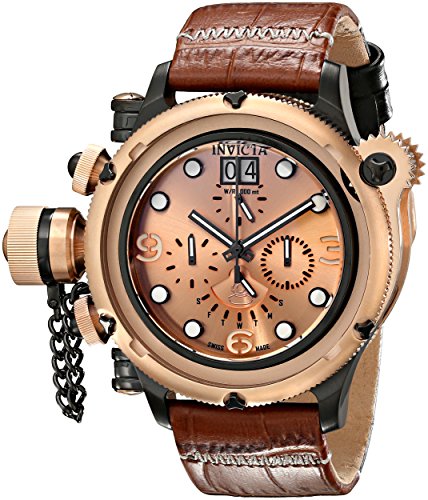 -. Binding : Watch -. Brand : Invicta -. Department : mens -. EAN : 0886678211739 -. Feature : Chronograph functions with 60 second, 60 minute, 1/10 of a second, retrograde day of the week sub dials; date window at 12:00 / Rose gold dial with removable cage-like accent on the front with gunmetal and white hands and hour markers, white Arabic numerals; luminous; black ion-plated stainless steel bezel; 18k rose gold ion-plated stainless steel crown at 9:00 with screw-down protective cap; hinged case back that can be opened to reveal a see-thru case back; flame fusion crystal; black ion-plated stainless steel case; brown and black leather strap / Swiss-quartz movement / Case diameter: 53mm / Water resistant to 3280 feet -. Label : Invicta -. Manufacturer : Invicta -. Model : 17331 -. MPN : 17331 -. PackageQuantity : 1 -. PartNumber : 17331 -. ProductGroup : Watch -. ProductTypeName : WATCH -. Publisher : Invicta -. Studio : Invicta -. Title : Invicta Men's 17331 Russian Diver Analog Display Swiss Quartz Brown Watch -. UPC : 886678211739
