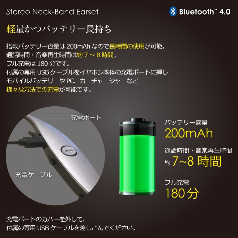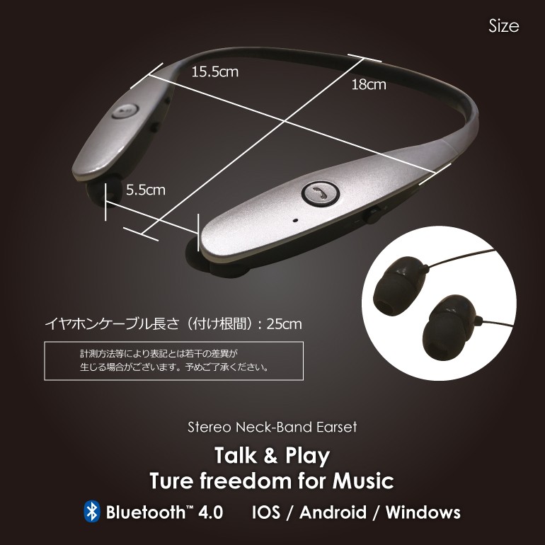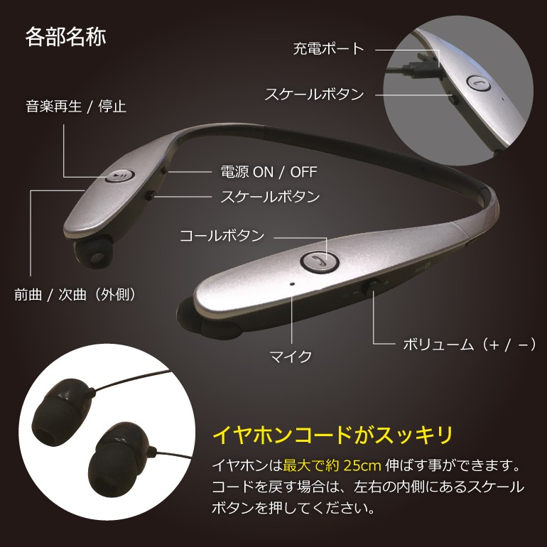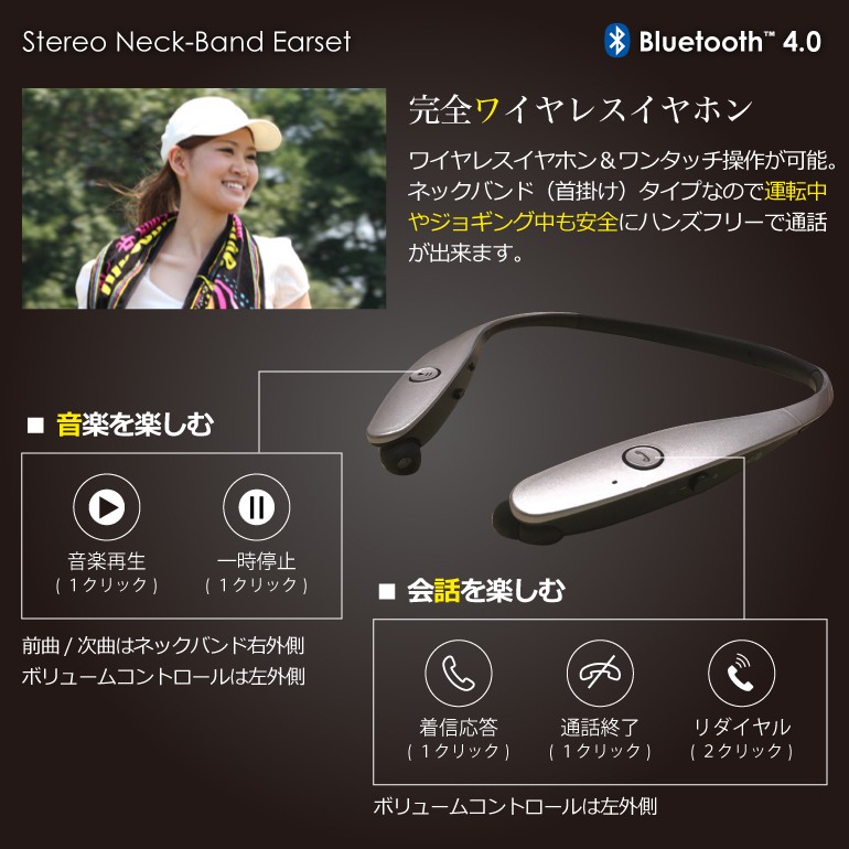 イヤホン bluetooth 首掛け ネックバンド ヘッドセット ワイヤレスイヤホン無線イヤホンなのでコードが邪魔になりにくく、ランニングやスポーツも音楽を聴きながら楽しめます!こんなにコンパクトなのに、連続再生最大4時間!コンパクト、超軽量設計、Bluetoothヘッドセット、ポータブルで持ち運びが便利!ノイズキャンセル機能があり、周囲の雑音を遮断しながら、ステレオサウンドの強力な低音とハイクオリティな音質を提供します。メール便での発送となります。【仕様】ワイヤレス Bluetooth イヤホン/ヘッドホンiPhone6/6s/6plus/6splus iPhone7/7plusなど Bluetoothバージョン:v4.0受信範囲:最大10M持続通話時間:5時間以上スタンバイ時間:約96時間音楽再生時間:5時間以上充電時間:約3時間 ※時間は目安です。環境や設定により異なります。 リダイヤル機能はパスコード等のロックをしている状態では使えません。 日本語説明書は付属しておりません。使用方法はこのページでご確認下さい。MadeinChinaカラー:ブラック、ゴールド、シルバー、ホワイト対応機種:ブルートゥース内蔵携帯電話/スマートフォン/タブレット対応