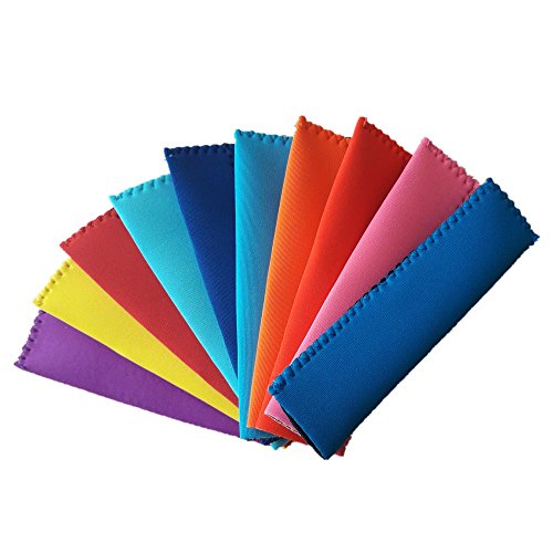 MS Made 10 Pack Antifreezing Popsicle Bags Freezer Popsicle Holders Reusable Neoprene Insulation Ice Pop Sleeves - Bright Colors & Stitched Edges