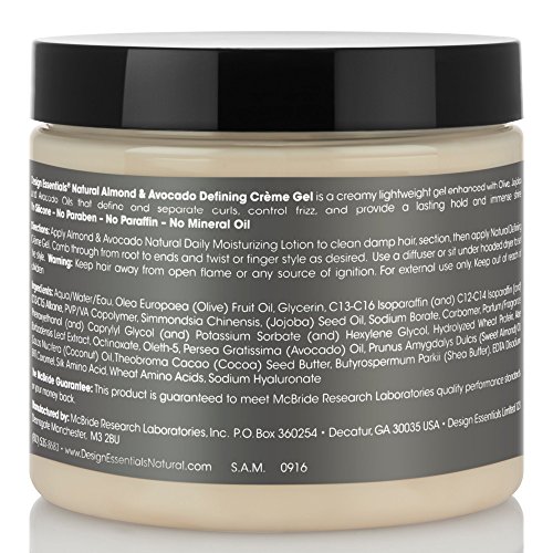 Design Essentials Natural Defining Hair Crème Gel for Hold, Definition and Shine-Almond & Avocado Collection, 16oz.