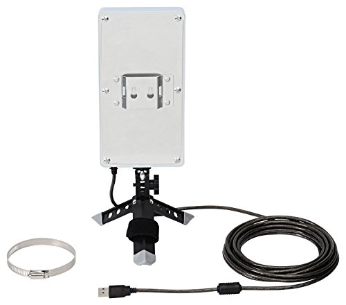 Long range 802.11n 2.4 GHz USB Wi-Fi booster with built-in 10 dBi directional antenna and integrated premium shielded 16 ft USB cable draws power from computer (no AC power supply needed).