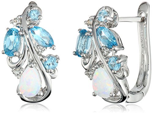 Sterling Silver earrings with pear shaped created opal, marquise, oval and round shaped Swiss blue topaz, with diamond cut white topaz accent hoop earrings