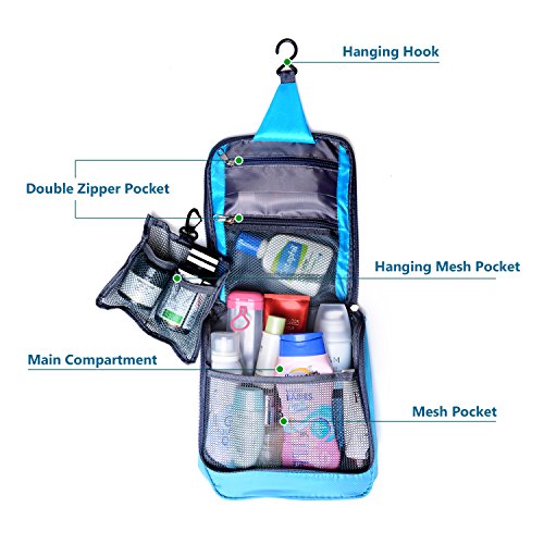 - • Hanging Hook Design: The well thought-out design of toiletry wash bag has a hanging hook to let you hang the bag in the toilet while you take care of other things.
