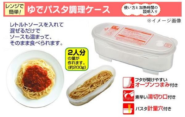 電子レンジで簡単にあつあつパスタを2人分(約200g)茹でられます。パスタ計量穴と湯切り口がついていてとっても便利!!レトルトソースを混ぜるだけでソースも温まり、そのまま召し上がれます。 |