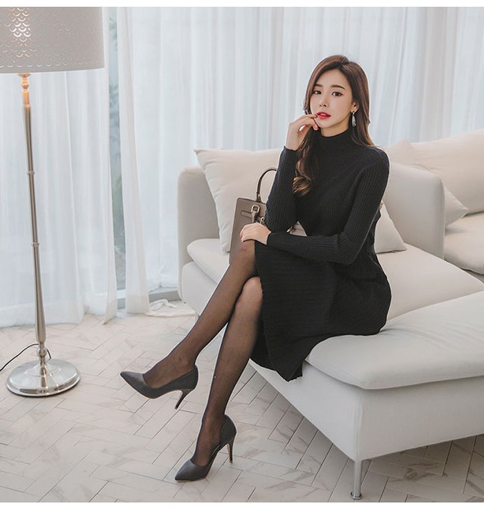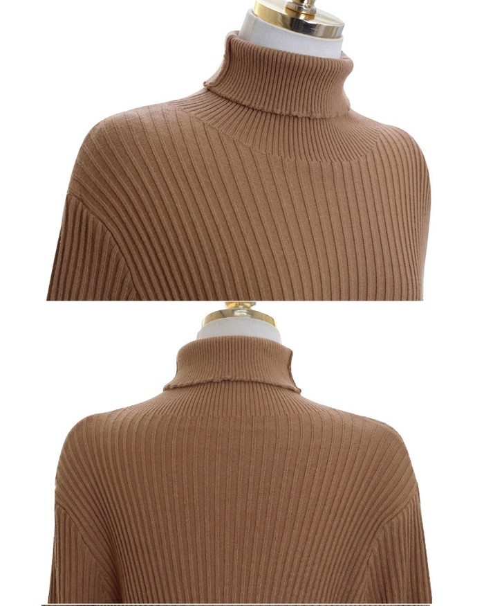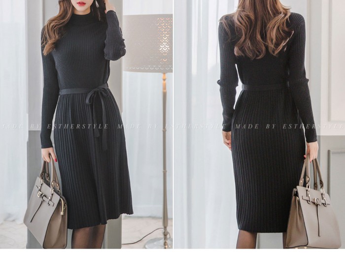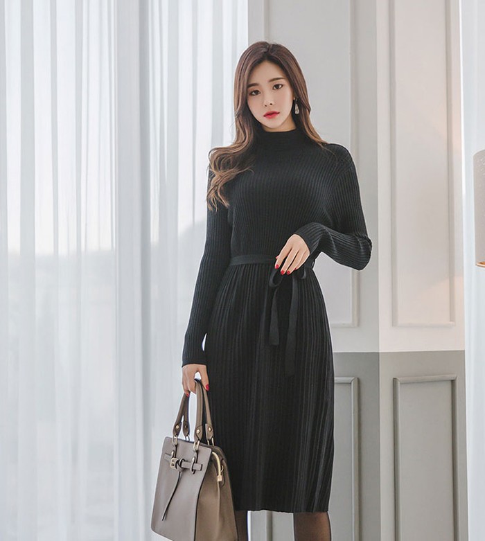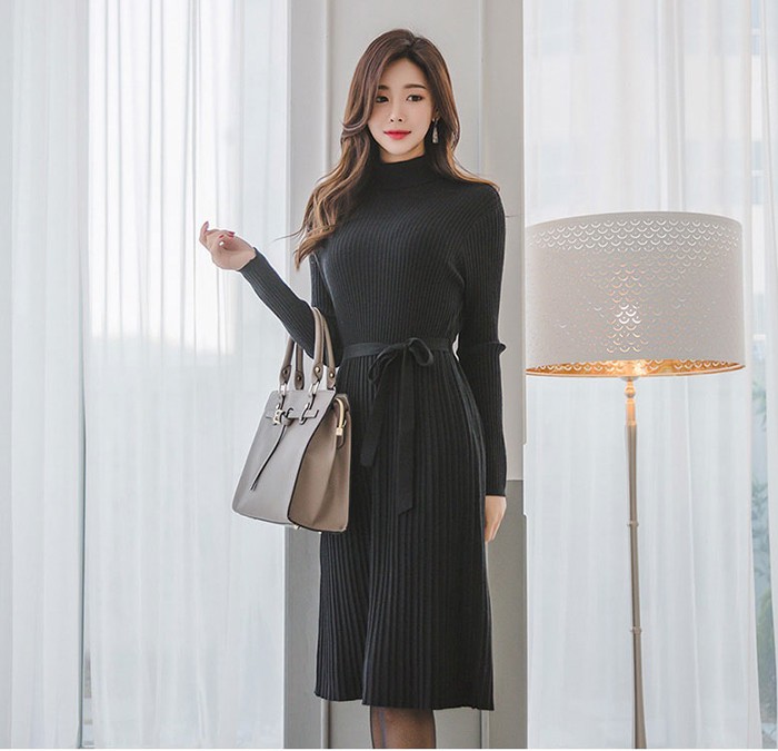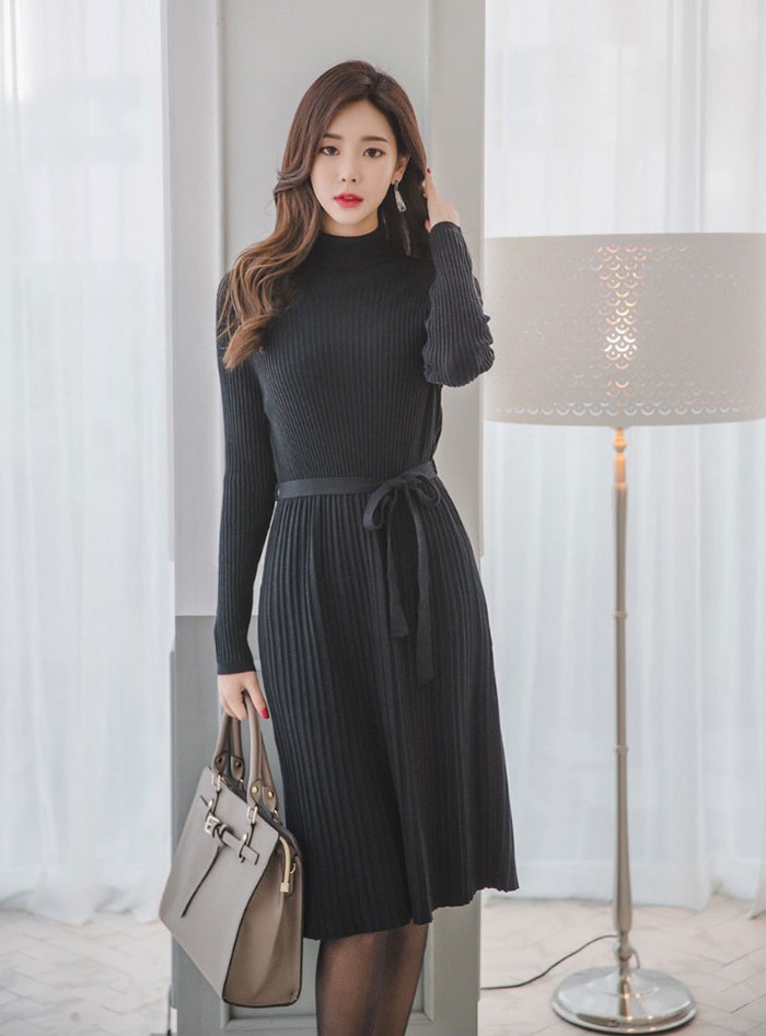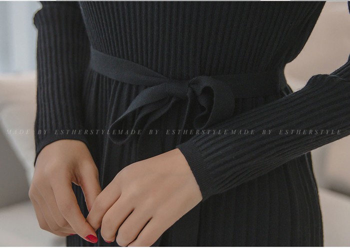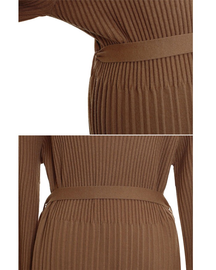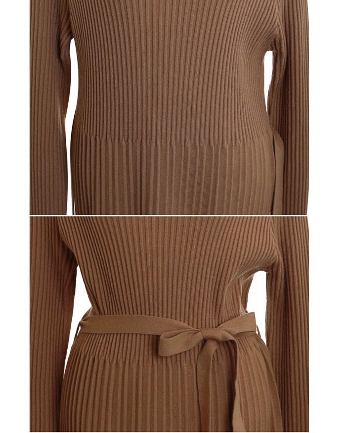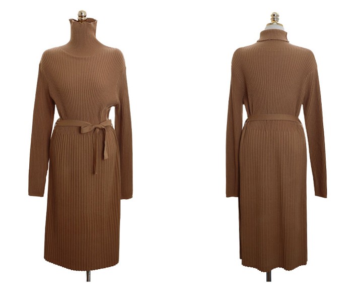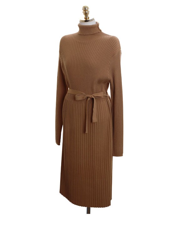 商品名:ワンピース 膝丈 ニット 無地 長袖