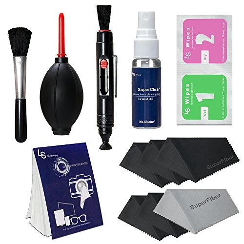 LS Photography Photo Camera Cleaning Brush Kit Cleaning Set for DSLR Cameras, Lens and Sensitive Electronics with (6 PCS.) 6" x 7" SuperFiber Lens Cleaning Cloth, LGG168