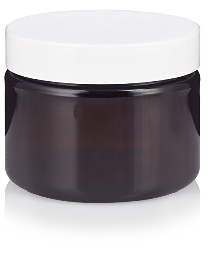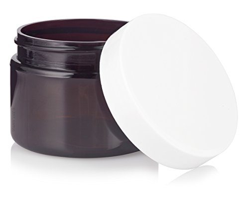 Amber PET Plastic (BPA Free) Refillable Low Profile Jar with White Lid - 3 oz (12 pack) + Spatulas and Labels
