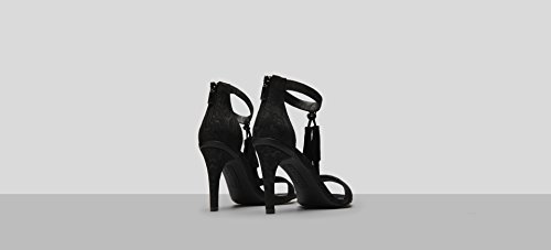 Product DescriptionTwo piece open toe dress sandal with stiletto heel tassel detail0