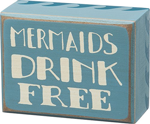 Vintage Style Mermaids Drink Free Blue Ocean Waves Wooden Box Sign 26002 Beach