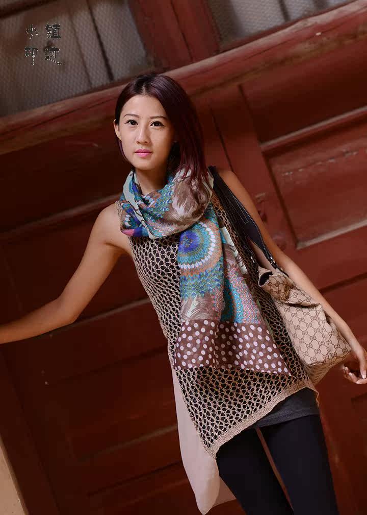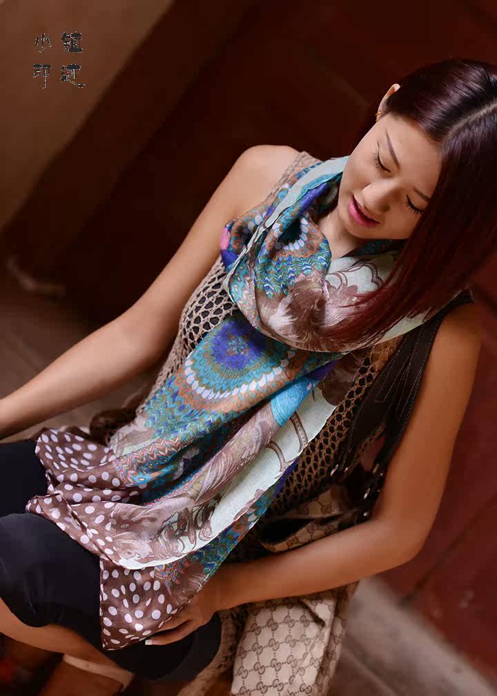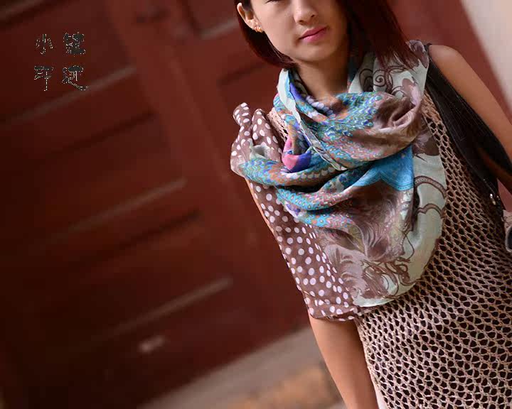 Peacock feather flowers soft cotton scarf