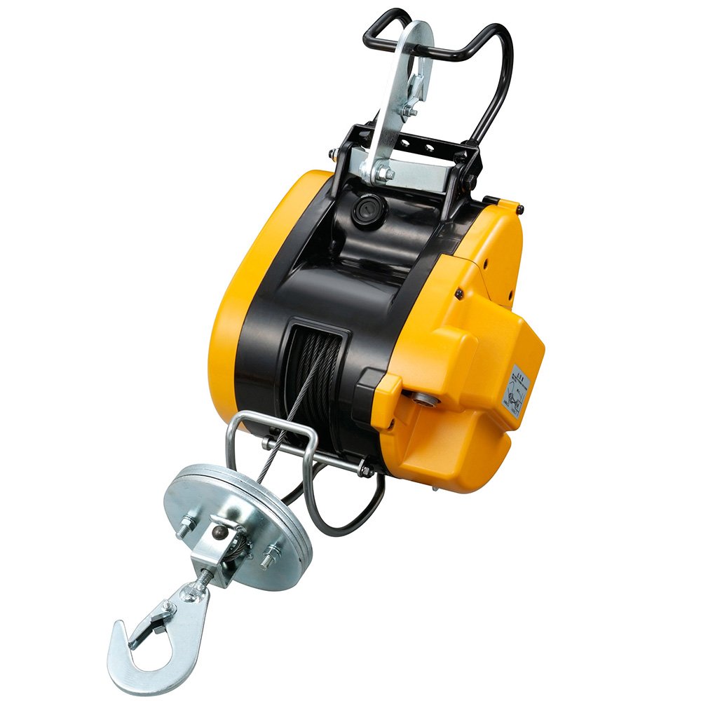 ● Wire diameter 4 mm × 21 m ● Maximum lifting load: 60 kg ● Acceleration prevention ● Reverse winding prevention ● With brake ● Head: 20 m · Lifting speed: 46 cm / s ● Maximum lifting load: 60 kg ● Single phase 100 V · 6.0 A
