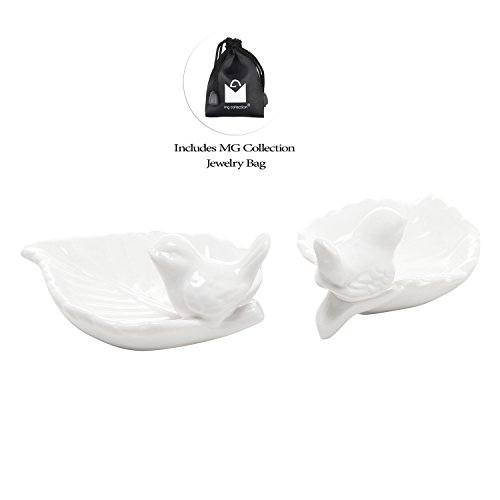 - Title : (Set of 2) Classic White Ceramic Leaf & Birds Design Decorative Jewelry Tray / Ring Dish / Trinket Holder