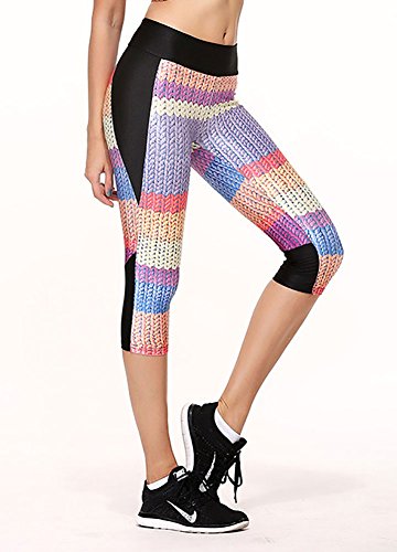 -. Title : QZUnique Women's Stripe P.R.Int Cropped Pants Workout CaP.R.I Leggings
