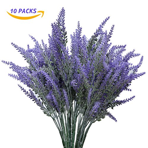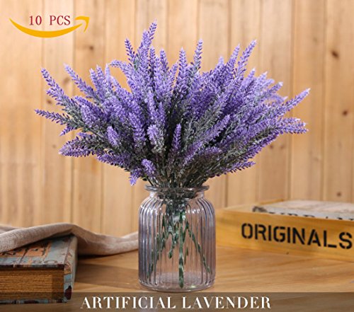 2.Easy to install.Package includes: 10 X bouquets Artificial Lavender Bouquet-Each bouquet have 5 stems and 5 flowers, flower approx 3.94 inch, Bouquet approx 14.57 inch height (The vase is NOT included)